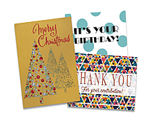 Personalized business greeting cards including complete mailing services.