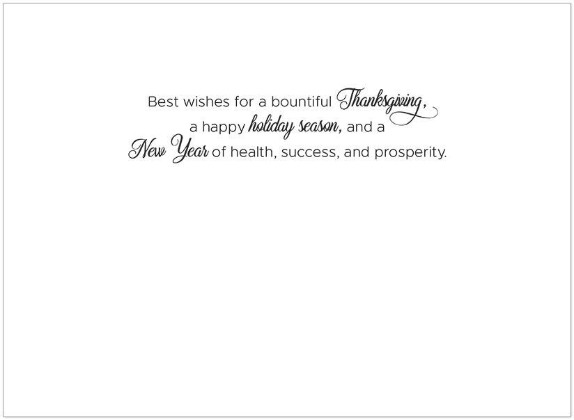 Interior Text: Best wishes for a bountiful Thanksgiving, a happy holiday season, and a New Year of health, success, and prosperity.